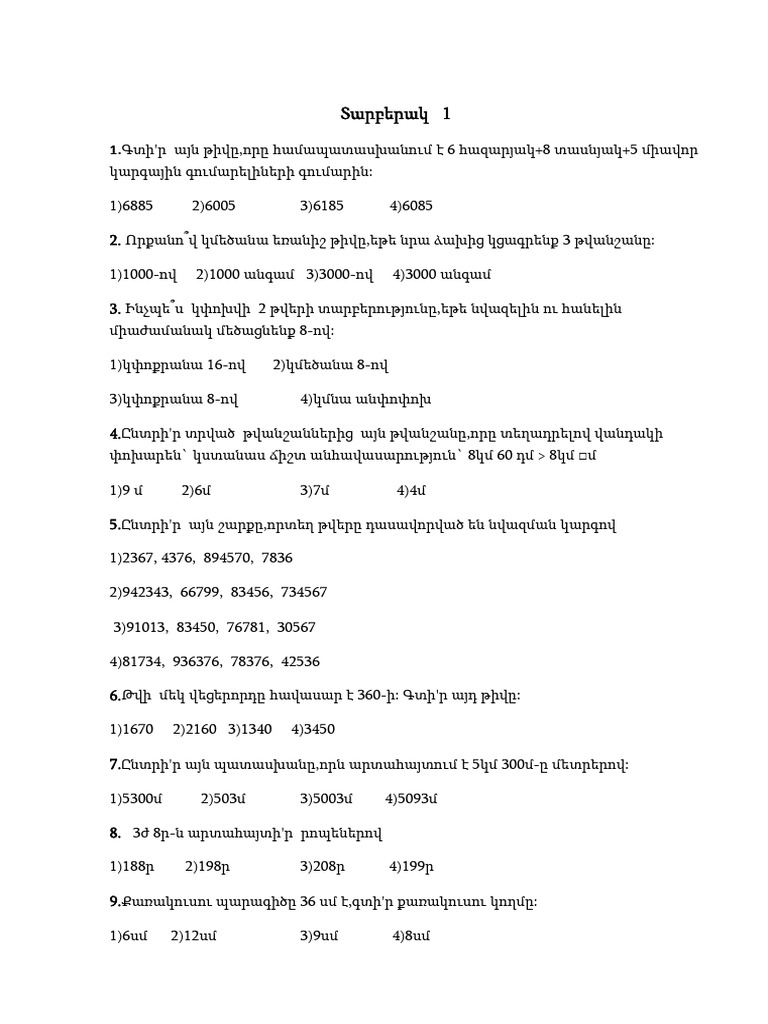 1.Գտնել այն թիվը ,որն համապատասխանում է 1 տասհազարյակ+9հազ.+8