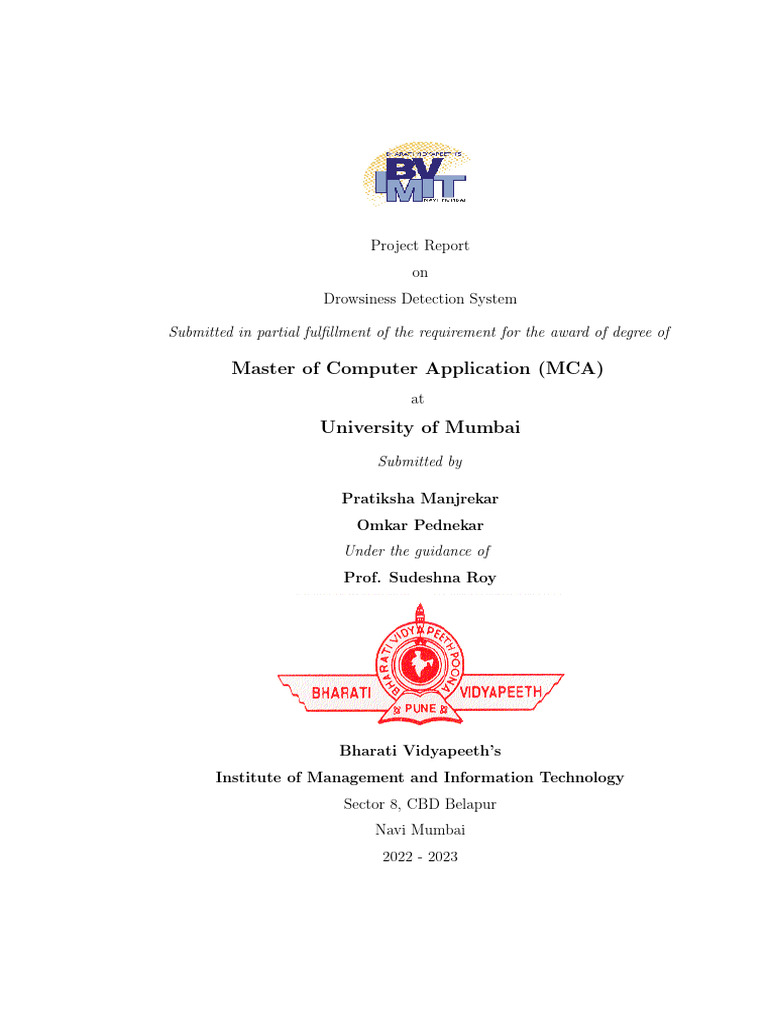 This is to certify that the mini project titled ’Drowsiness Detection System’