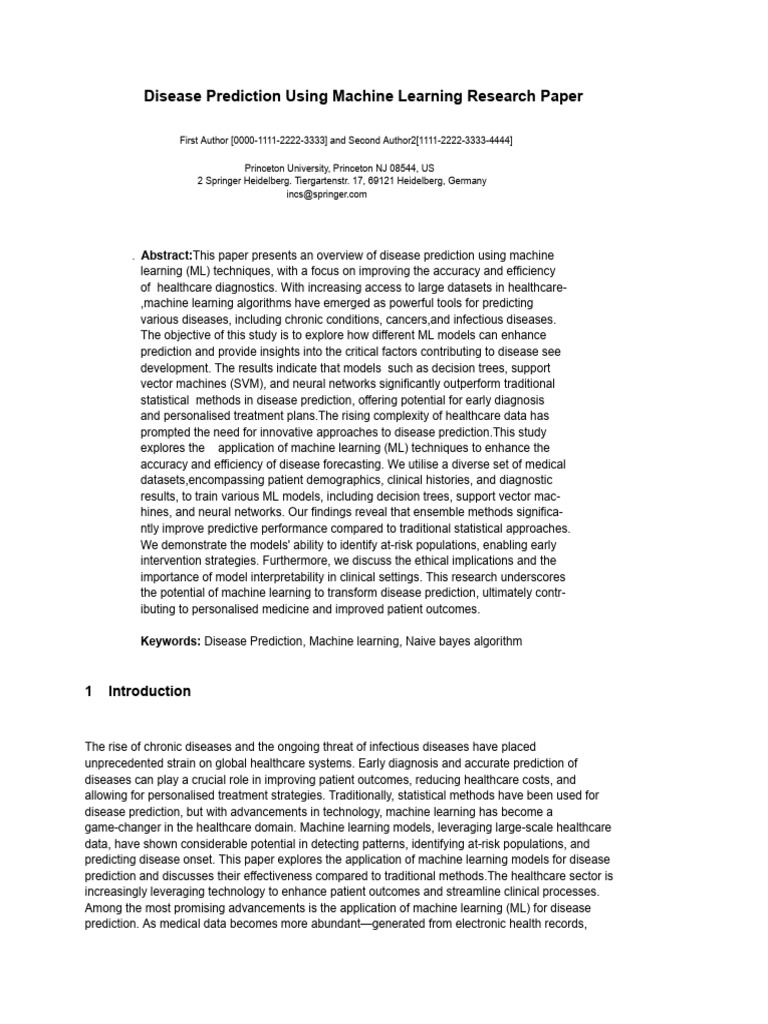 the potential of machine learning to transform disease prediction, ultimately contr-