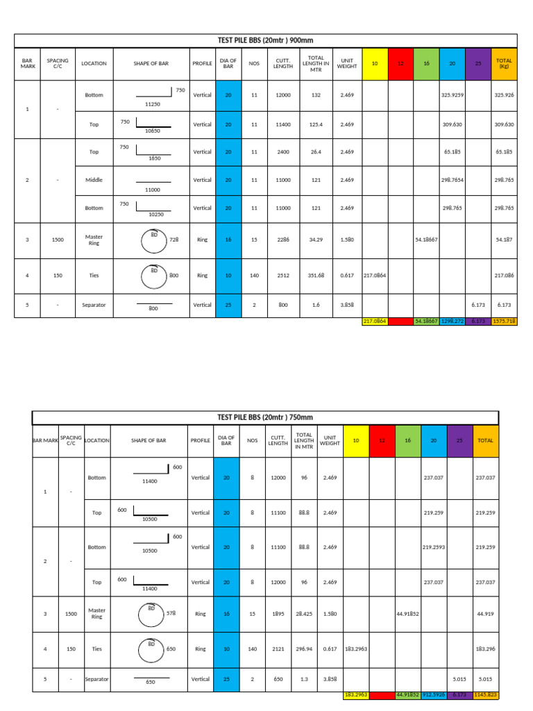 BAR MARK LOCATION SHAPE OF BAR PROFILE NOS LENGTH 10 12 16 20 25 TOTAL