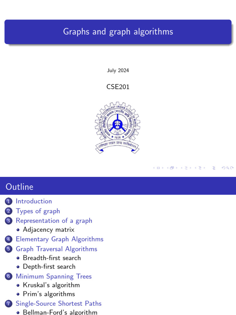 (July 2024) Graphs and graph algorithms CSE201 115 / 115