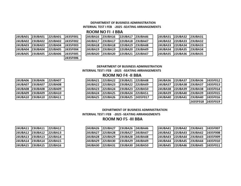 INTERNAL TEST I FEB -2025 -SEATING ARRANGEMENTS