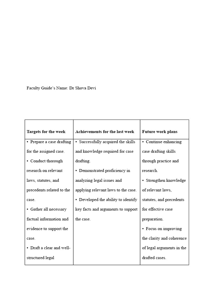 for the assigned case. and knowledge required for case case drafting skills