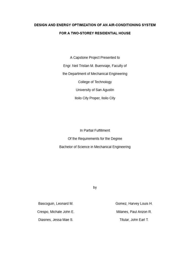 Air-Conditioning System for a Two-Storey Residential House, is focused on developing a