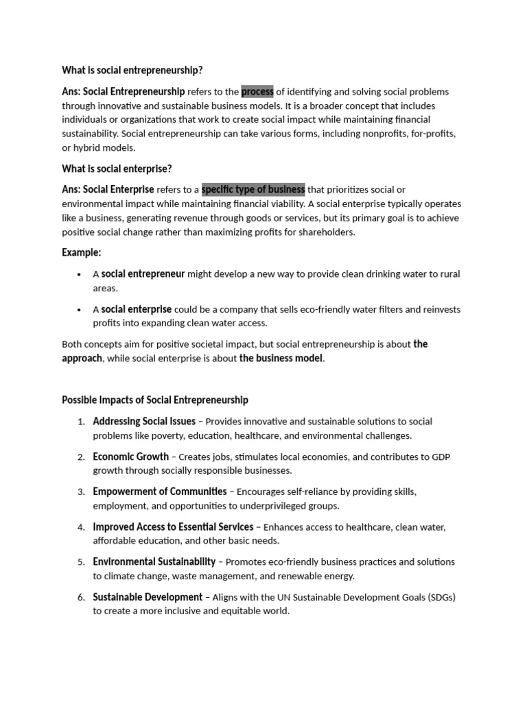 Ans: Social Enterprise refers to a specific type of business that prioritizes social or