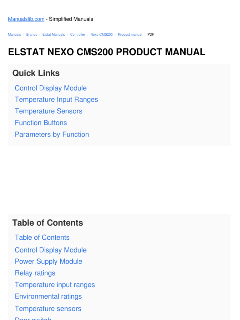Manuals / Brands / Elstat Manuals / Controller / Nexo CMS200 / Product manual / PDF