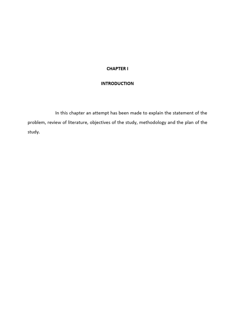 problem, review of literature, objectives of the study, methodology and the plan of the