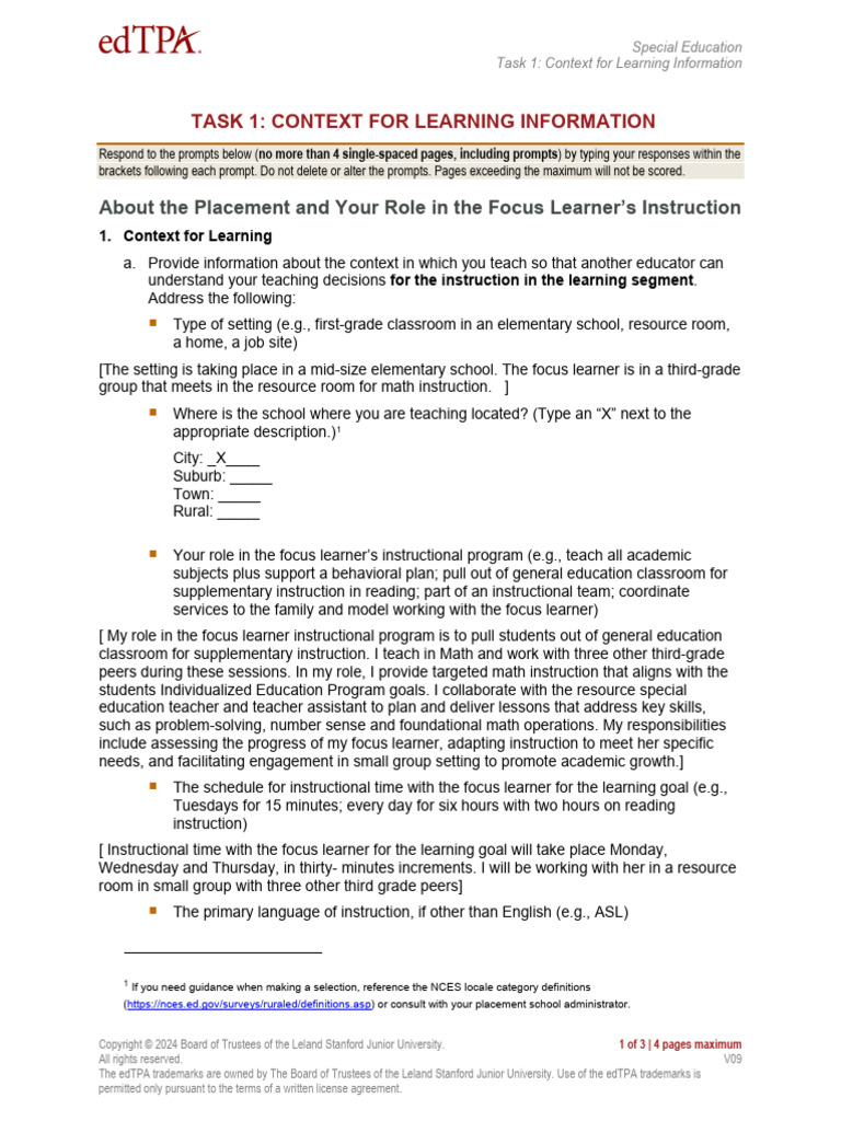 d. Explain how, throughout the learning segment, you will help the focus learner to