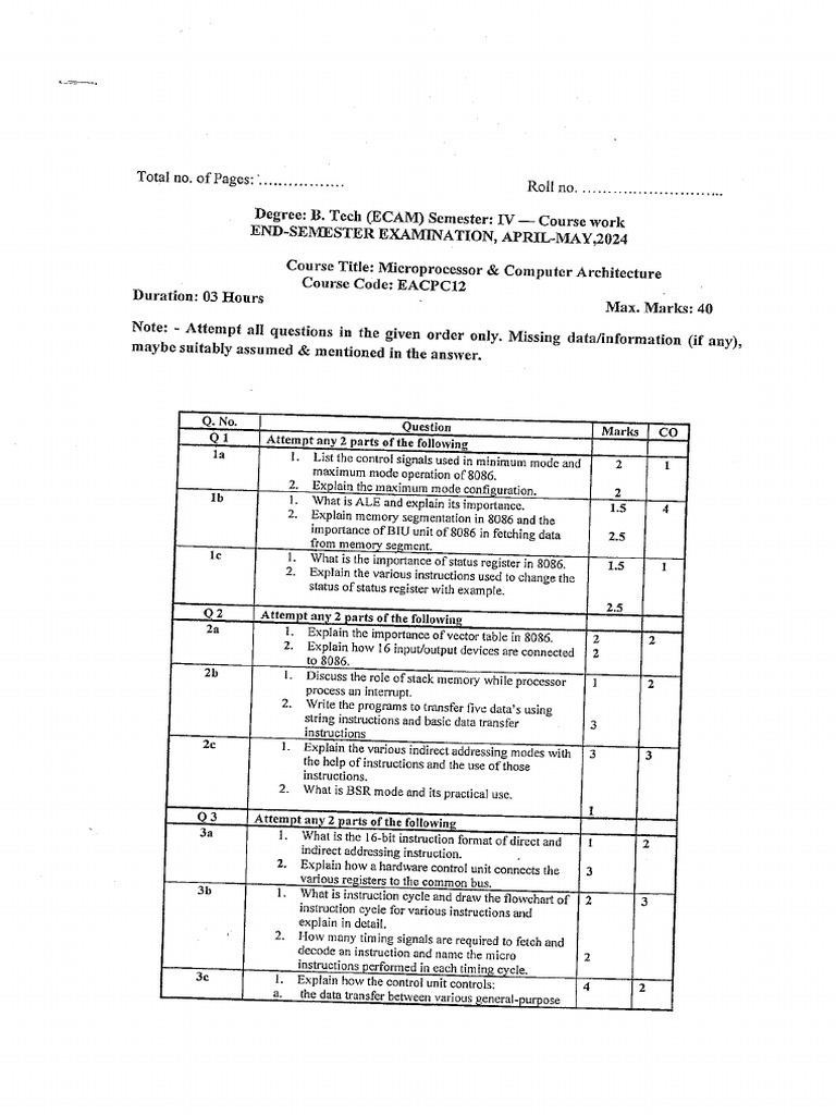 Degree: B. Tech (ECAM) Semester: IV Course work —