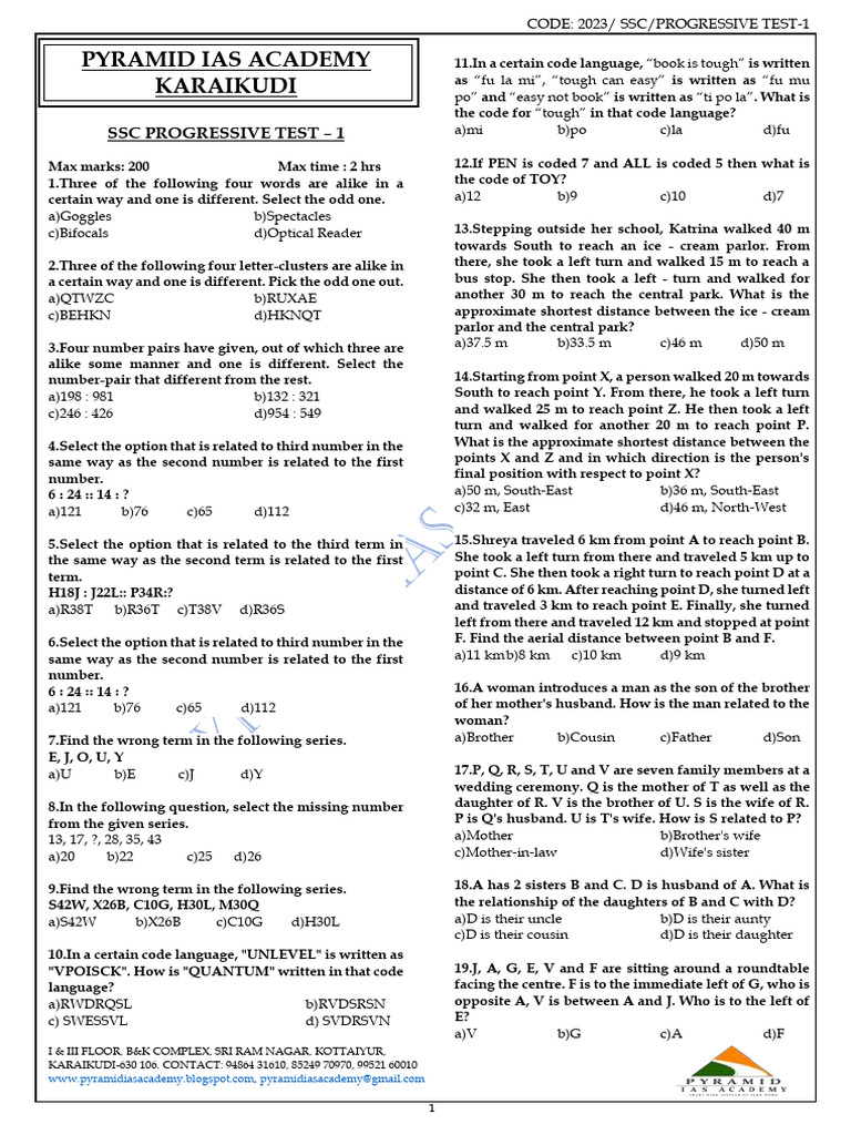 CODE: 2023/ SSC/PROGRESSIVE TEST-1