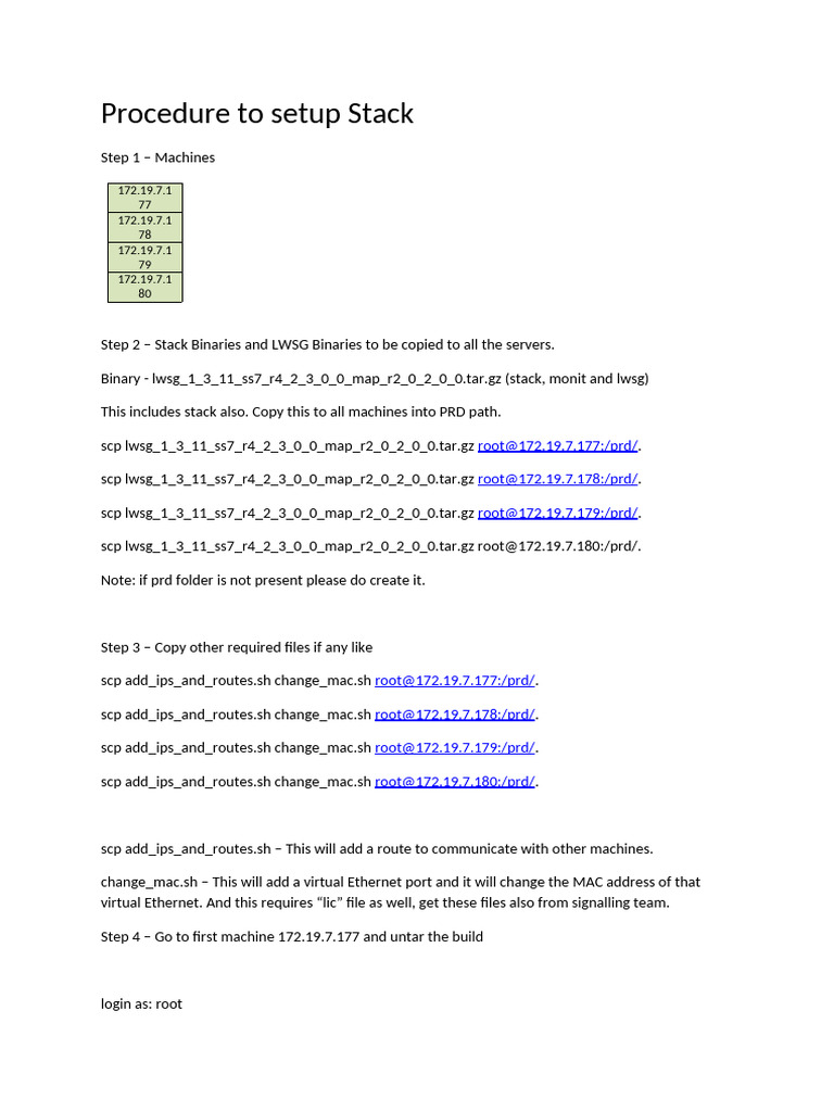 Procedure to setup Stack
