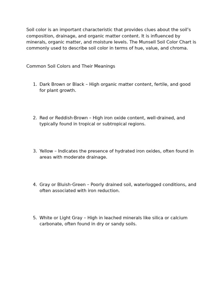 minerals, organic matter, and moisture levels. The Munsell Soil Color Chart is