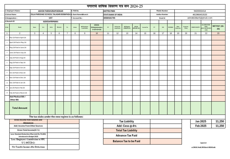 पगाराचे वार्षिक वववरण पत्र सन 2024-25