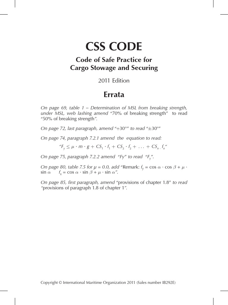 On page 80, table 7.5 for μ = 0.0, add “Remark: fy = cos α ∙ cos β + μ ∙