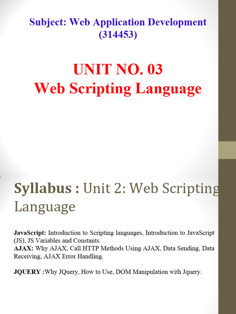 JavaScript: Introduction to Scripting languages, Introduction to JavaScript