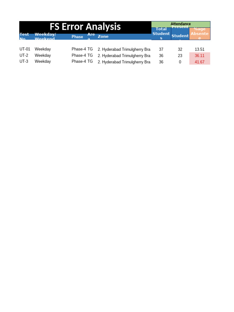 UT-3 Weekday Phase-4 TG 2. Hyderabad Trimulgherry Bra 36 0 41.67