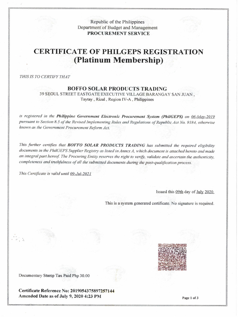 is registered in the Philippine Government Elec#ontc Procurewant System {PkitGEPS} on Q6-Mry-2019