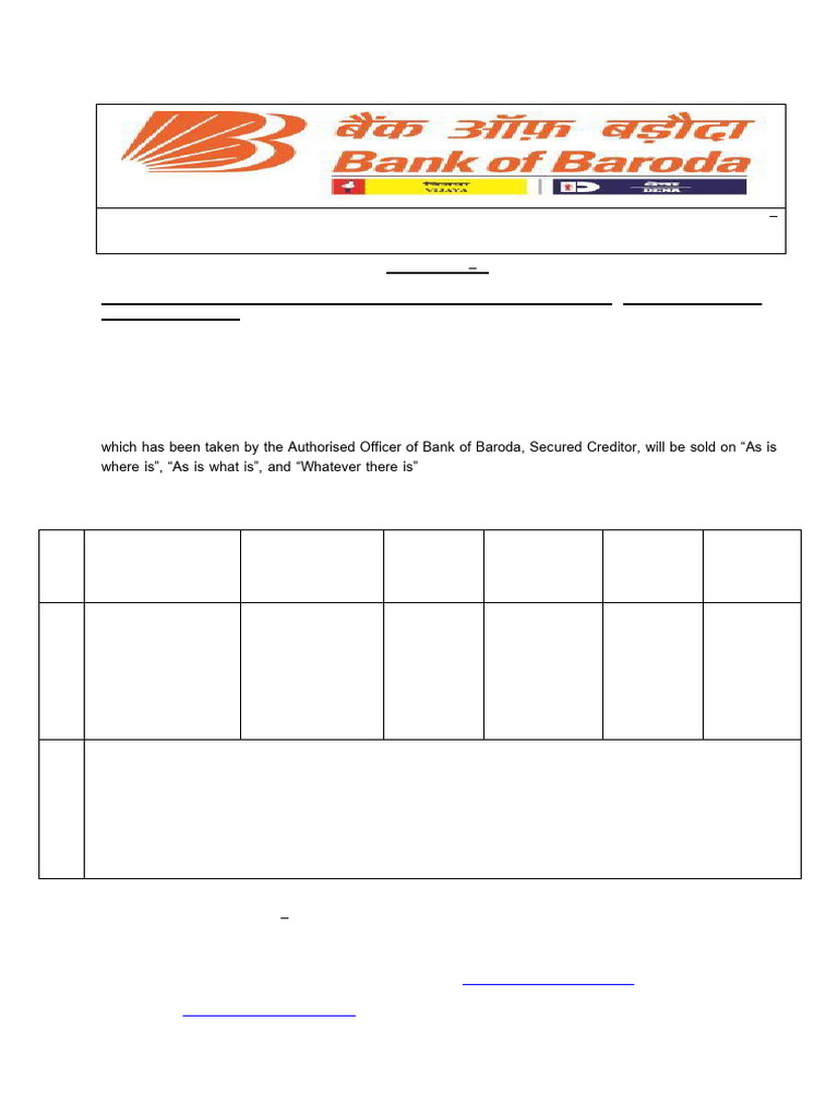 which has been taken by the Authorised Officer of Bank of Baroda, Secured Creditor, will be sold on “As is