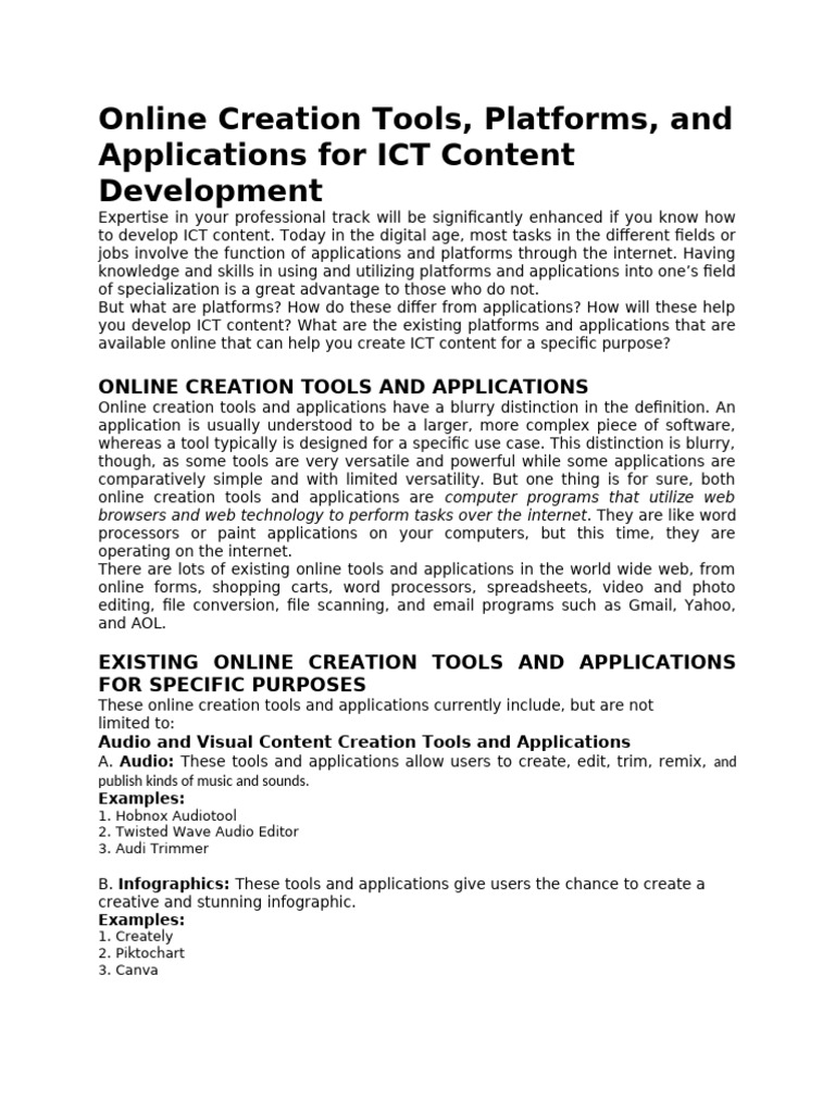 ONLINE CREATION TOOLS AND APPLICATIONS