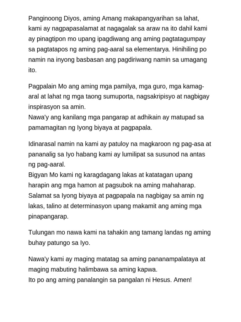 sa pagtatapos ng aming pag-aaral sa elementarya. Hinihiling po