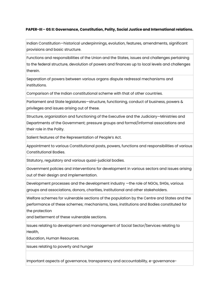 PAPER-III - GS II: Governance, Constitution, Polity, Social Justice and International relations.