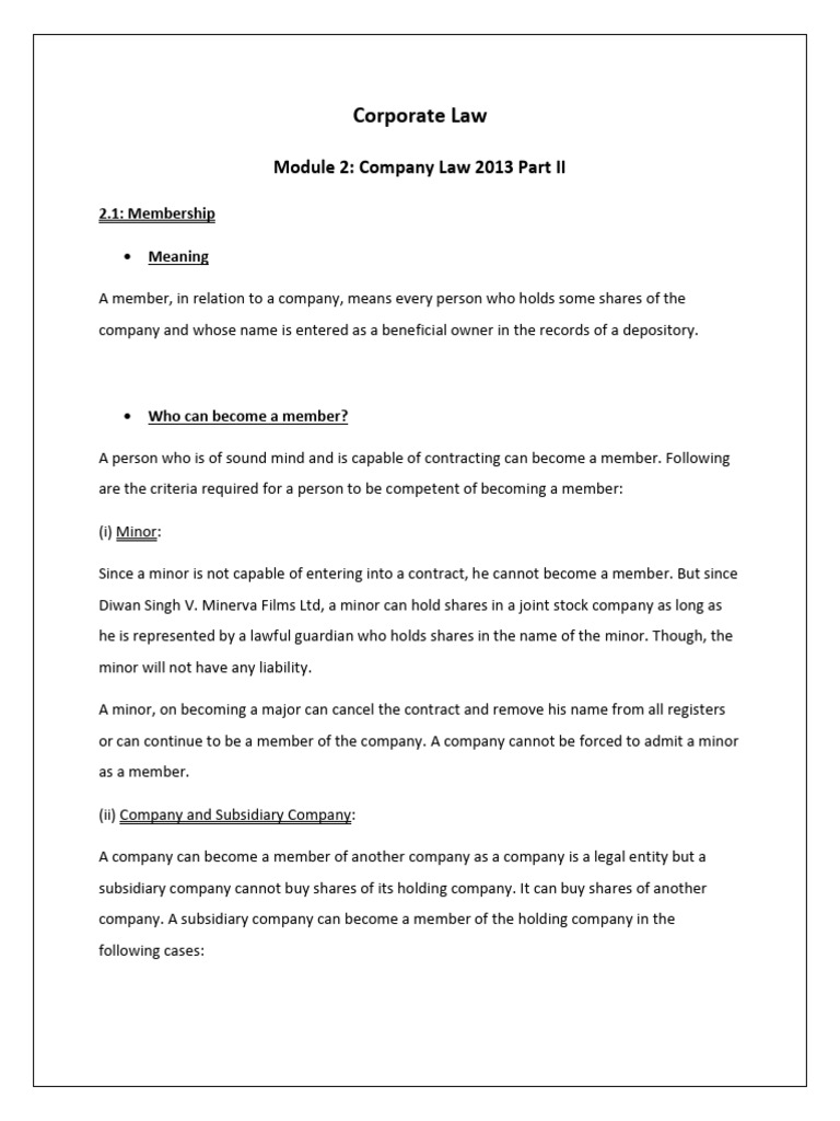 or can continue to be a member of the company. A company cannot be forced to admit a minor