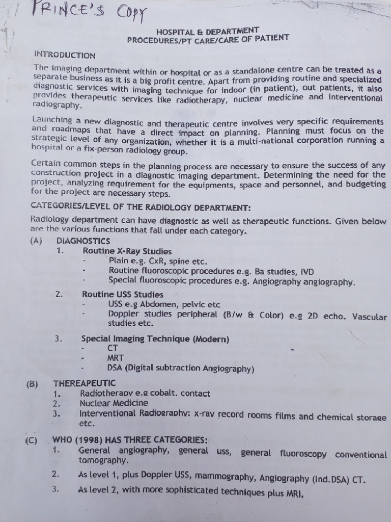Radiology department can have diagnostic as well as therapeutic functions. Given below