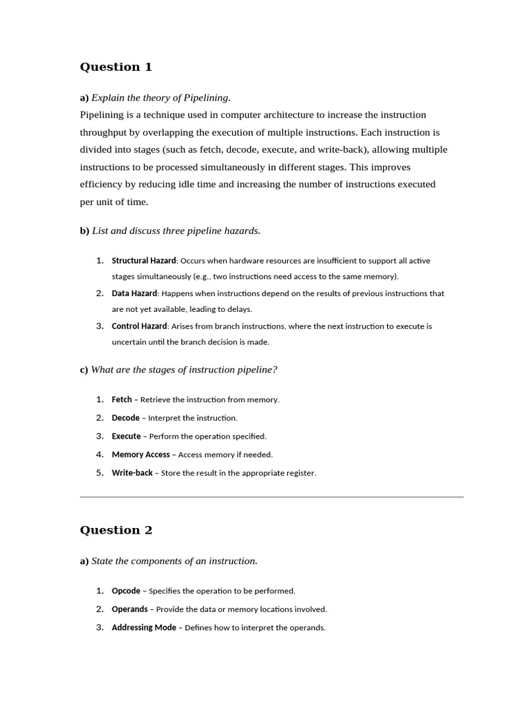 a) Explain the theory of Pipelining.