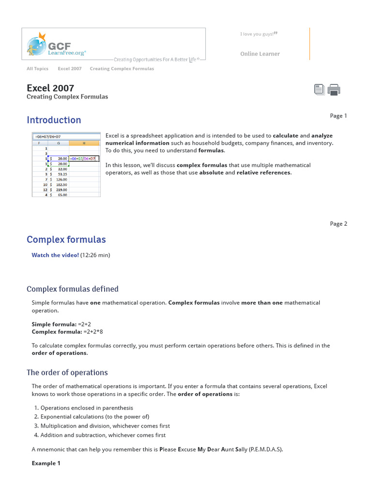 In this lesson, we’ll discuss complex formulas that use multiple mathematical