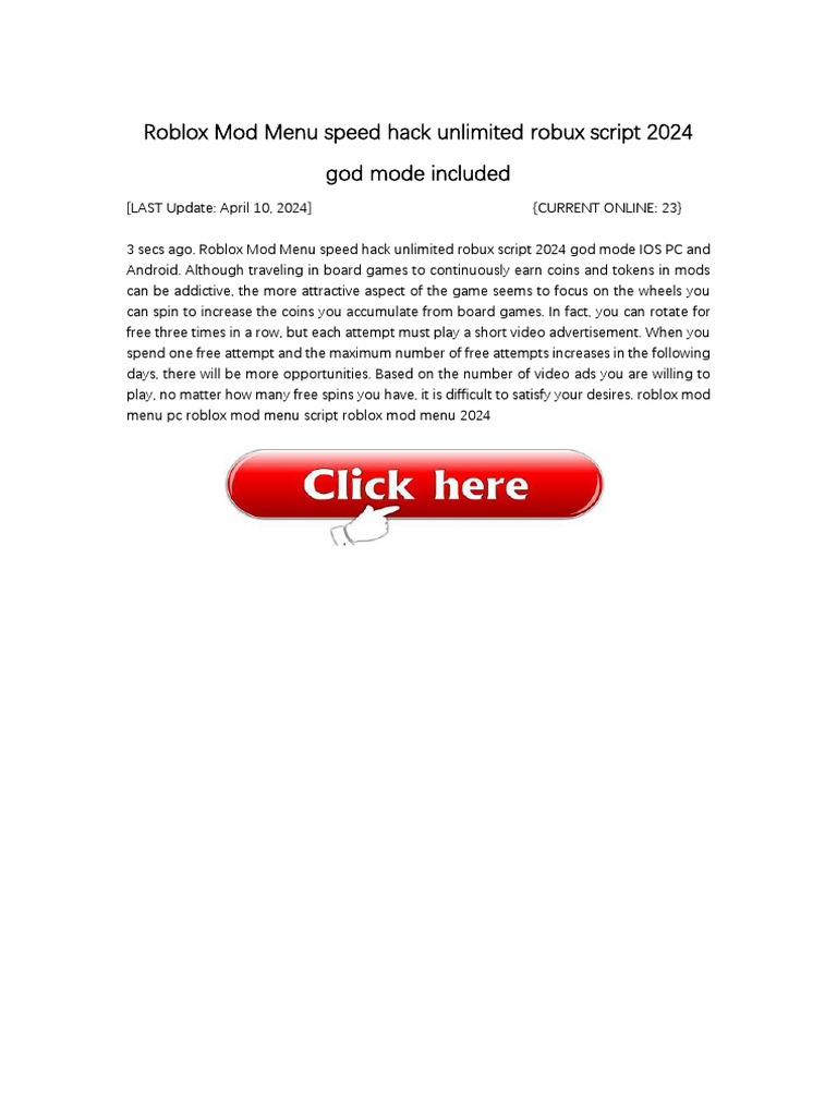 3 secs ago. Roblox Mod Menu speed hack unlimited robux script 2024 god mode IOS PC and