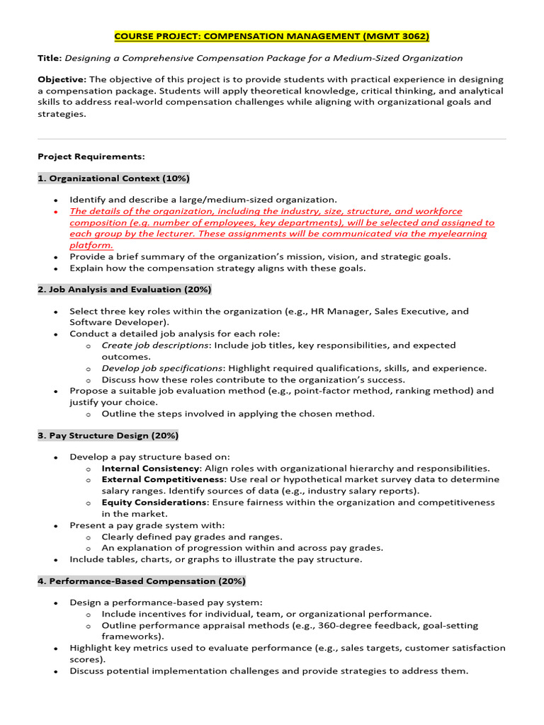 COURSE PROJECT: COMPENSATION MANAGEMENT (MGMT 3062)