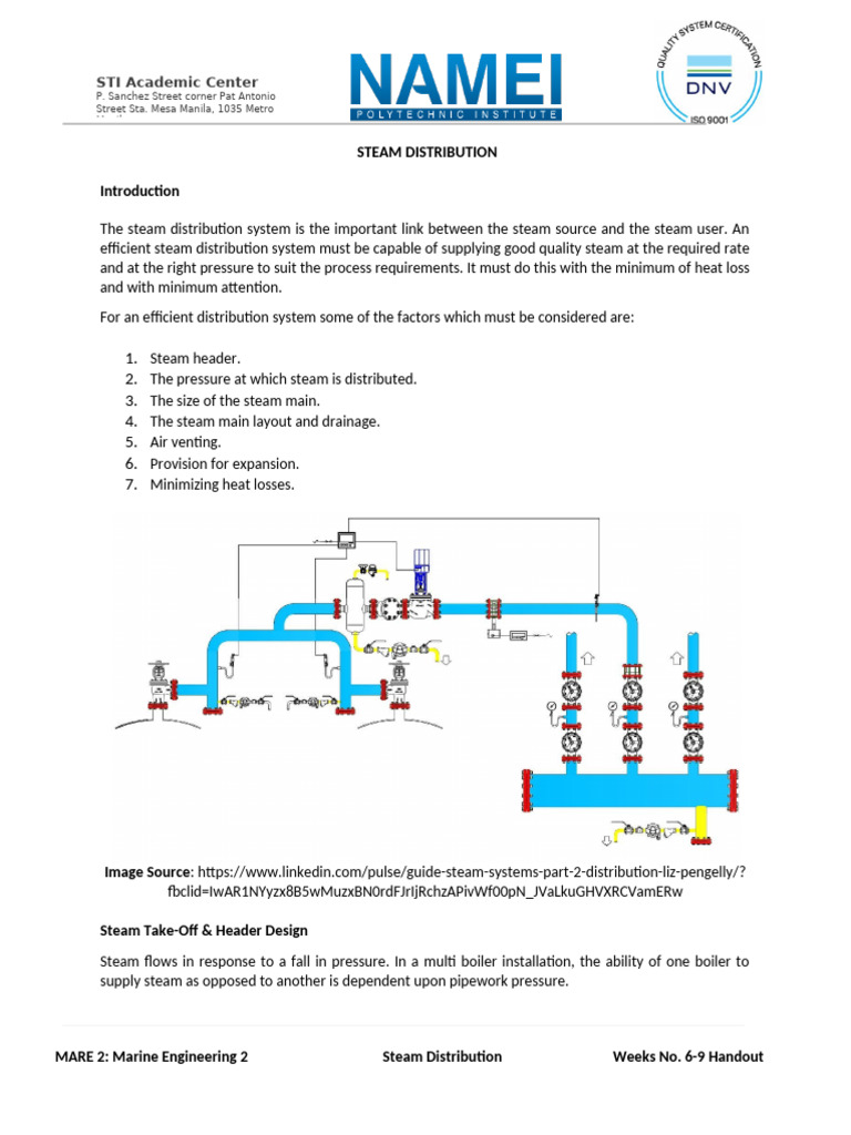 MARE 2: Marine Engineering 2 Steam Distribution Weeks No. 6-9 Handout