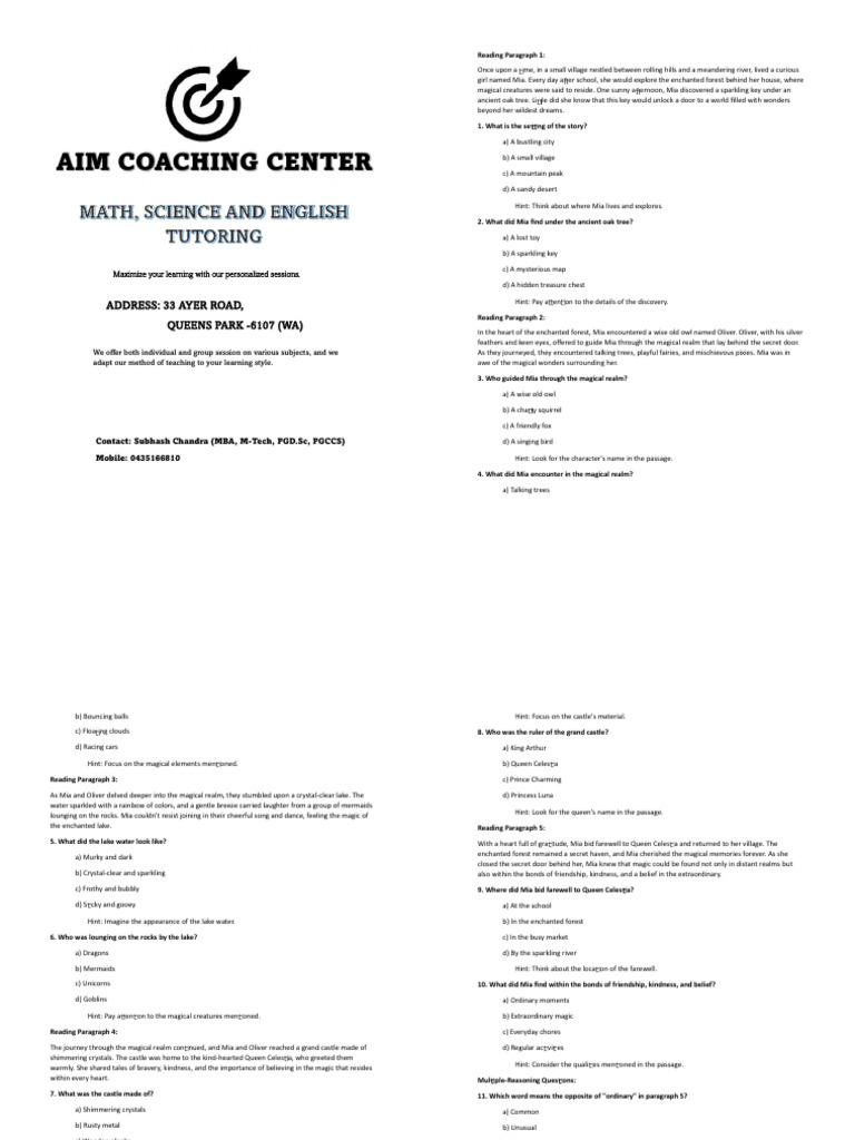 Hint: Consider Mia's ac ons and the tone of the passage. b) Due to magical wonders