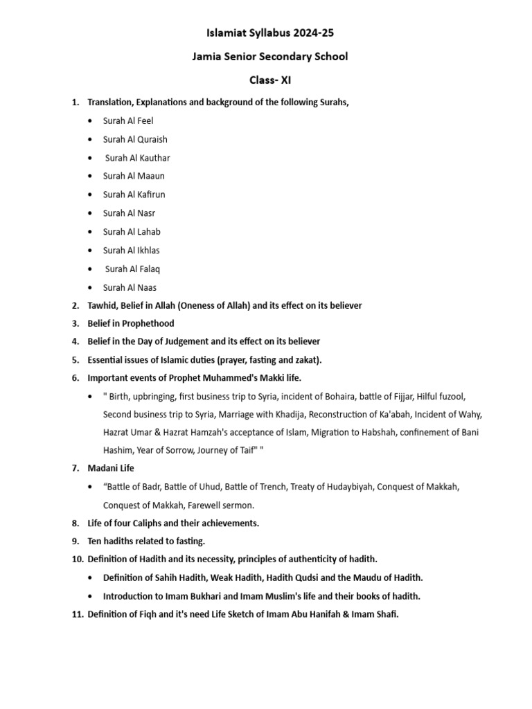 Islamiat Syllabus 2024-25