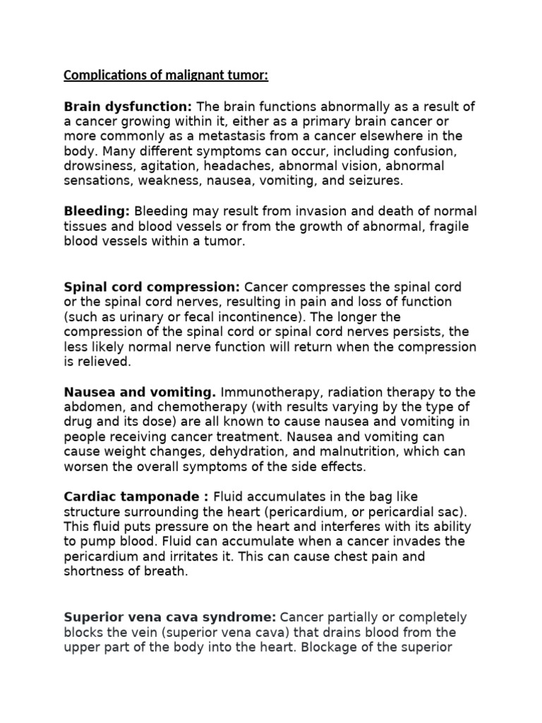 Nausea and vomiting. Immunotherapy, radiation therapy to the