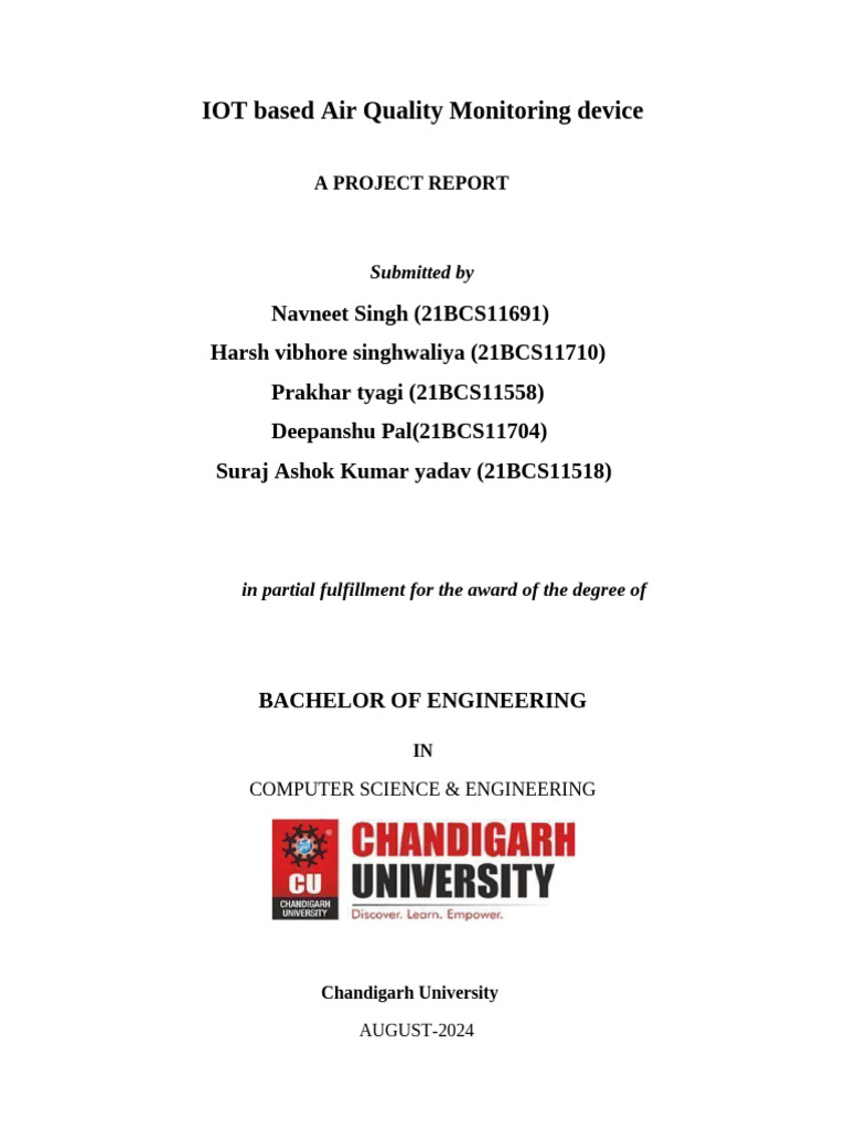 परियोजना इंटरनेट ऑफ थिंग्स (IoT) आधारित वायु गुणवत्ता निगरानी उपकरण के