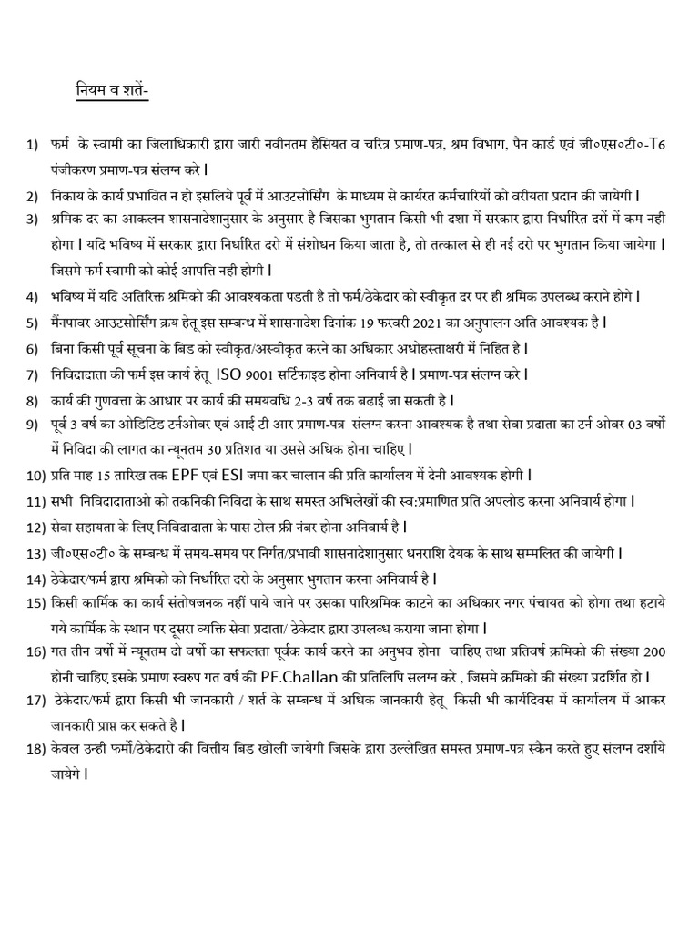 4) भनवष्य में यनद अनतररक्त श्रनमको की आवश्यकता पर्ती है तो फमम/ठे केदार को स्वीकृ त दर पर ही श्रनमक उपलब्ि करािे होगे I