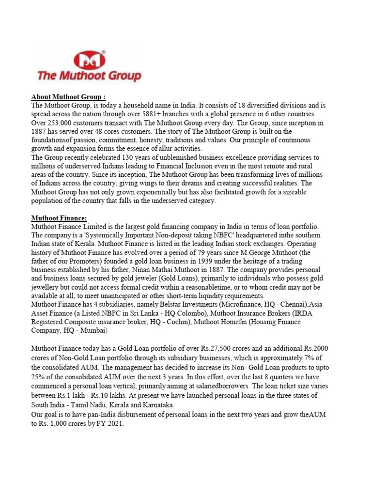 areas of the country. Since its inception, The Muthoot Group has been transforming lives of millions