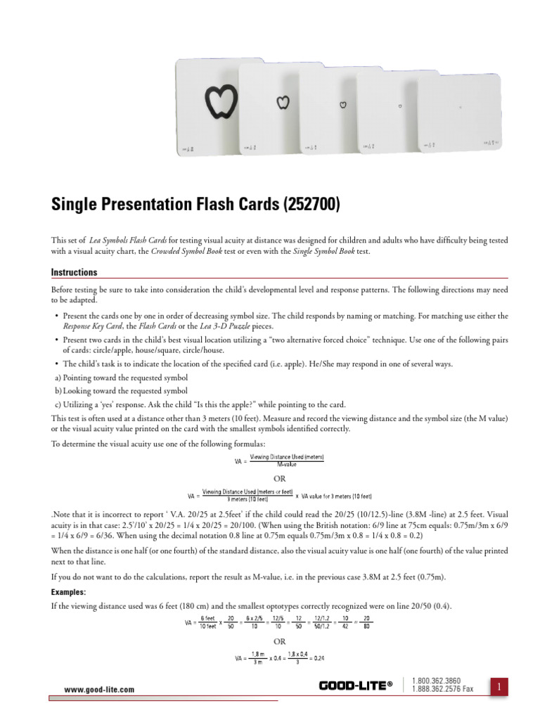 This set of Lea Symbols Flash Cards for testing visual acuity at distance was designed for children and adults who have difficulty being tested