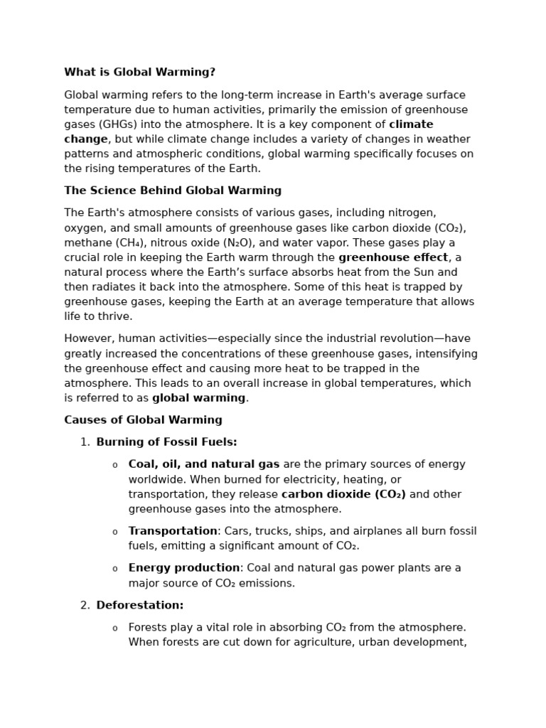 o Forests play a vital role in absorbing CO₂ from the atmosphere.