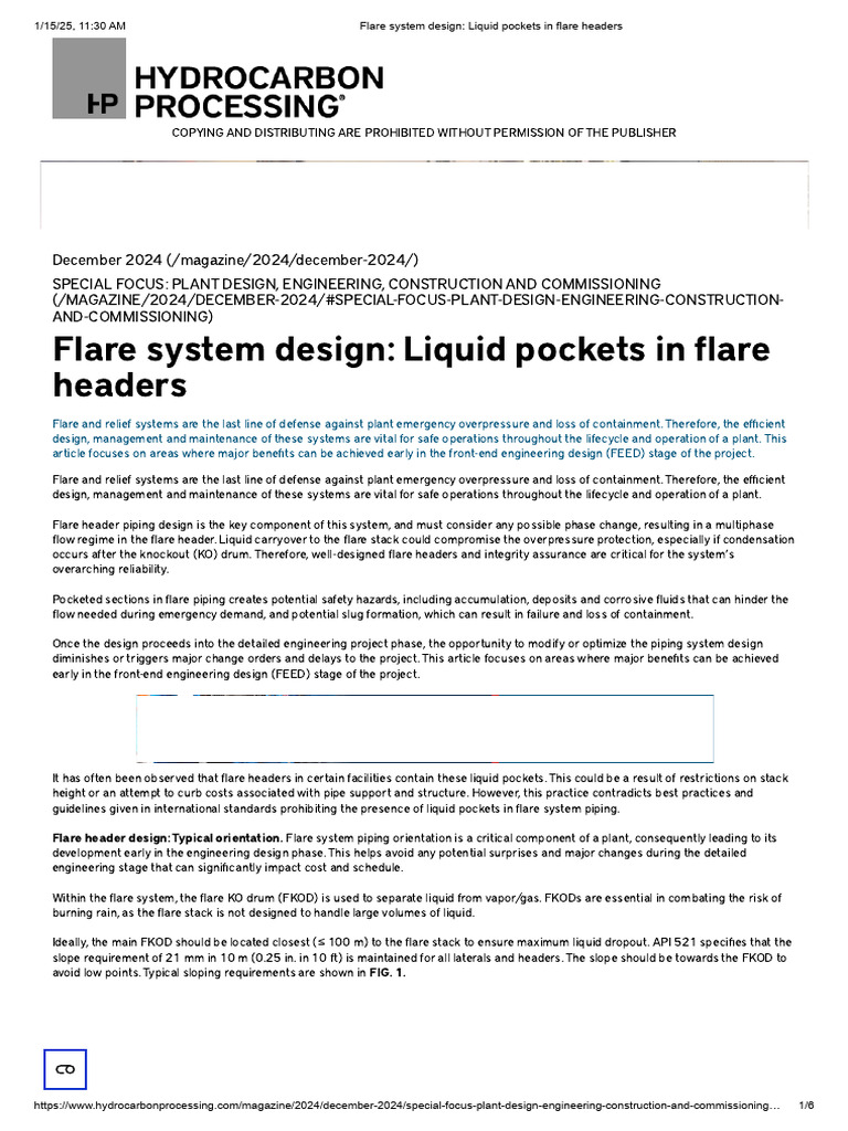 1/15/25, 11:30 AM Flare system design: Liquid pockets in flare headers