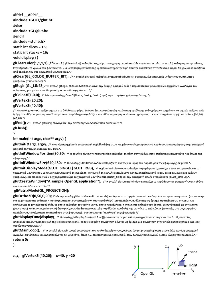 glutInit(&argc,argv); /* Η συνάρτηση glutInit ενεργοποιεί τη βιβλιοθήκη GLUT και µέσω αυτής µπορούµε να περάσουµε παραµέτρους στην εφαρµογή