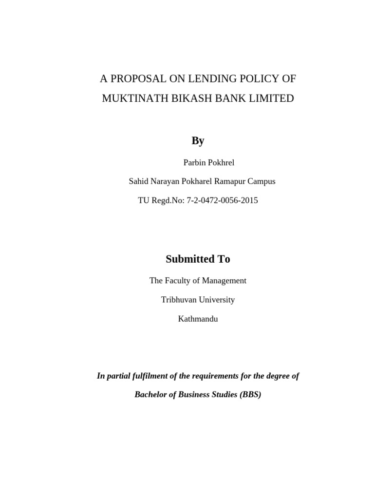 “Lending policy of Muktinath Bikash Bank Limited (MNBBL)” is selected in order to