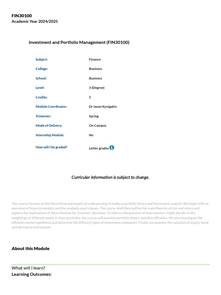 Investment and Portfolio Management (FIN30100)