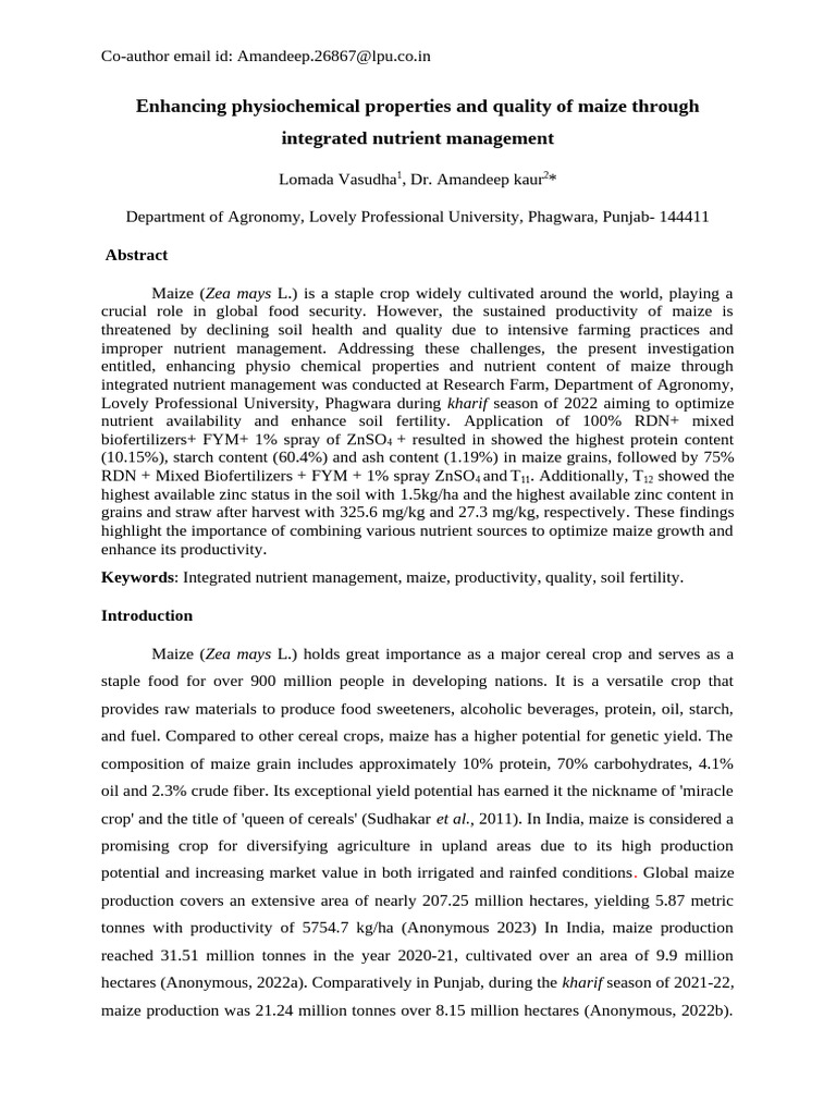 entitled, enhancing physio chemical properties and nutrient content of maize through