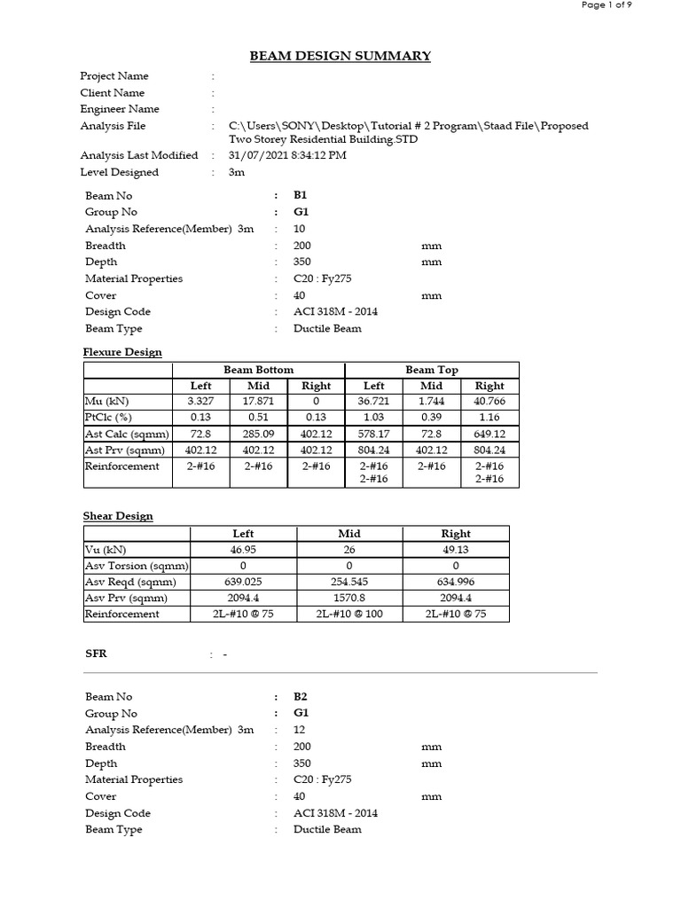 Analysis File : C:\Users\SONY\Desktop\Tutorial # 2 Program\Staad File\Proposed