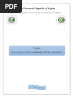 environment. A solution for this issue is the recovery of the lubricating base oil from the used oil.