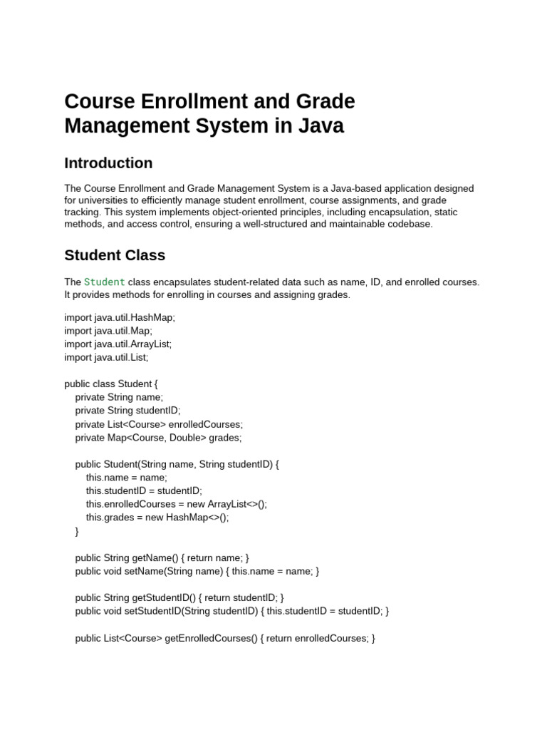 The Course Enrollment and Grade Management System is a Java-based application designed