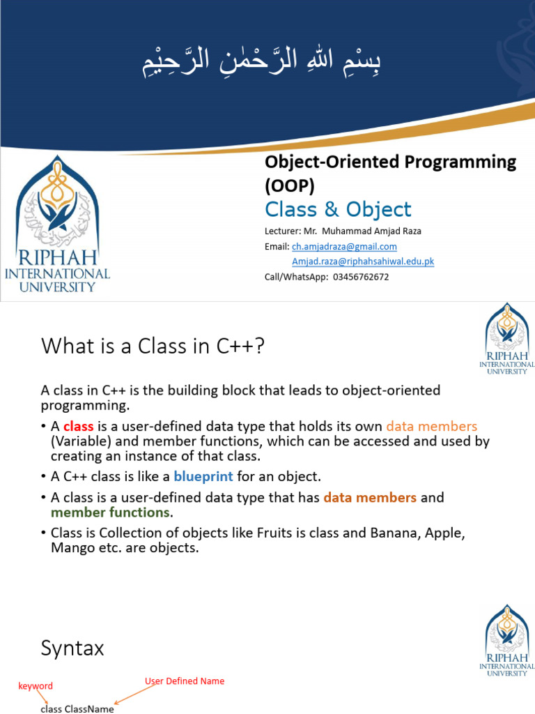 • In the above example of class Car, the data member will be speed limit, mileage, etc, and