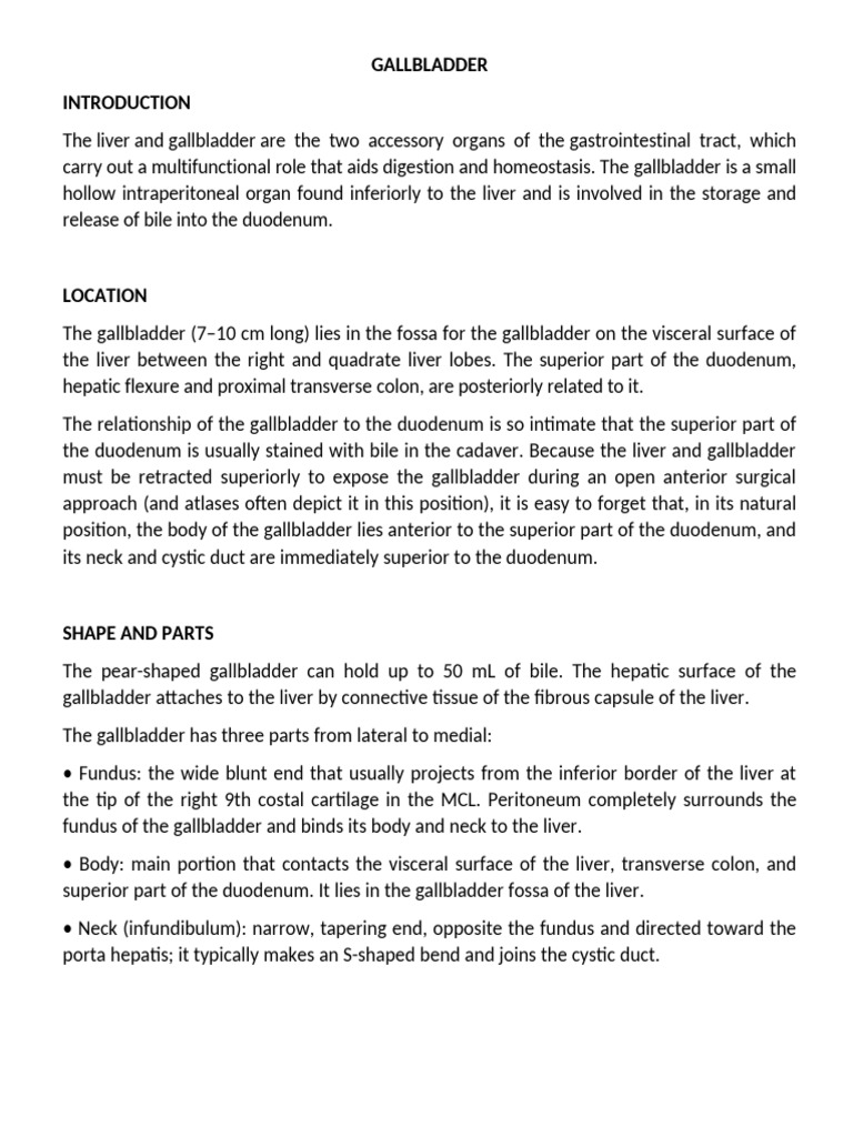 position, the body of the gallbladder lies anterior to the superior part of the duodenum, and